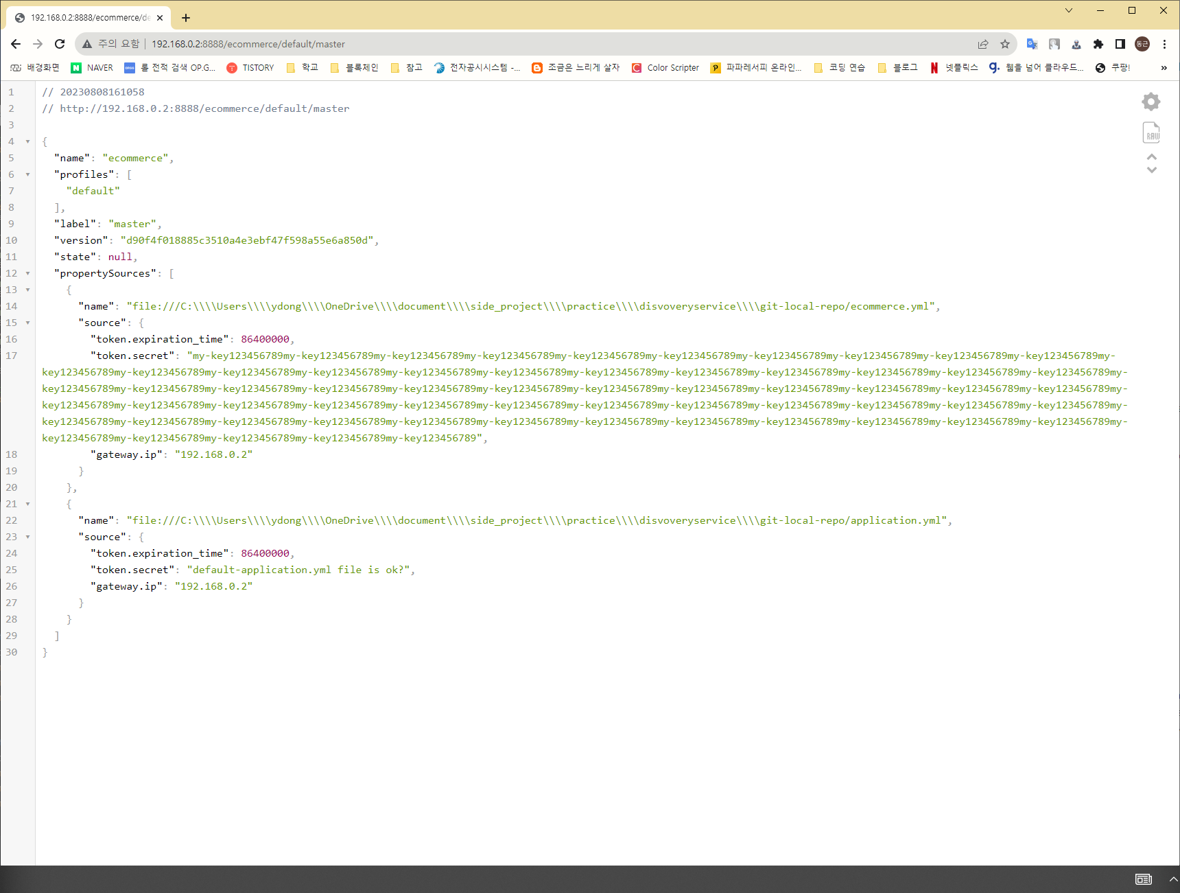uri: file:///C:\\samplePath\\git-local-repo # 설정 파일 저장소 uri