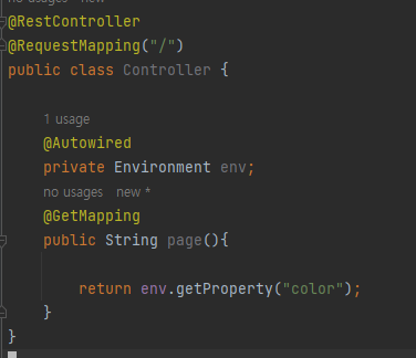 간단하게 변경된 설정 정보를 Environment 객체를 이용해서 조회하는 rest controller 를 구현해서 기능이 동작하는지 확인하는 식으로 확인을 해보았다.