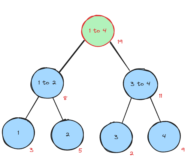 다음은 특정 범위의 값을 모두 더한 세그먼트 트리를 표현한 그림이다.