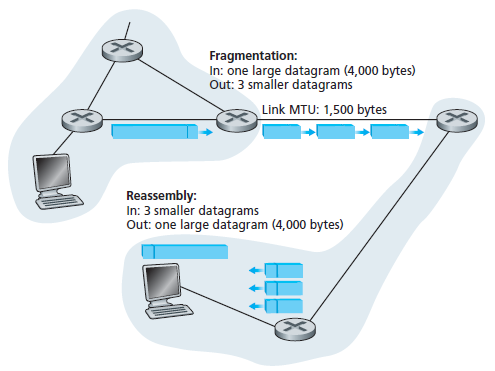 과도한 용량의 데이터그램은 링크 계층에서 MTU를 초과해서 전달이 불가능하다.