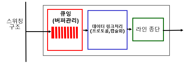 스위치를 통해서 전송되는 패킷이 출력 회선이 처리하는 양보다 많으면 큐잉이 발생