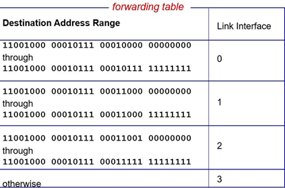 - 포워딩 테이블이 목적지 주소마다 하나의 엔트리를 가지면 매우 큰 테이블이 필요 -> 한계가 존재