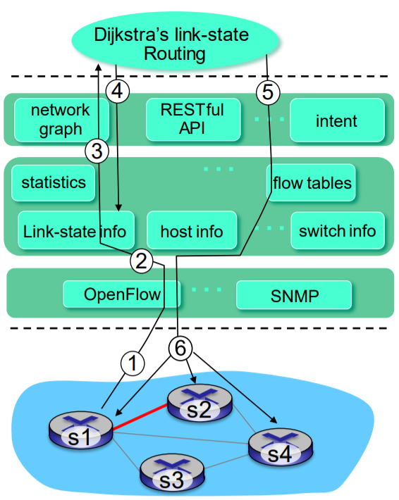 2. SDN 컨트롤러는 링크 상태 관리자에게 알려 링크 상태 데이터베이스를 갱신한다.