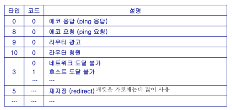 ICMP 메시지에는 타입과 코드 필드가 있고, ICMP 메시지가 처음 생성되도록 한 IP 데이터그램의 헤더와 첫 8바이트를 가진다. (송신자가 오류를 발생시킨 패킷을 식별 할 수 있도록 하기 위해서)