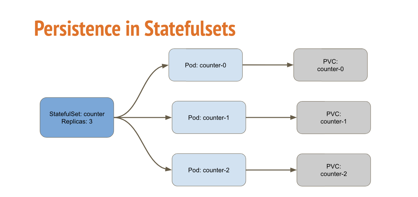 우선 스테이트 풀셋은 영구적인 스토리지(pvc)를 각 pod 마다 할당하여 사용해야한다. 이에 반해 디플로이먼트는 영구적인 스토리지를 선택적으로 사용할 수 있고 사용을 하더라도 모든 pod와 공유하는 공유 스토리지로 사용한다.